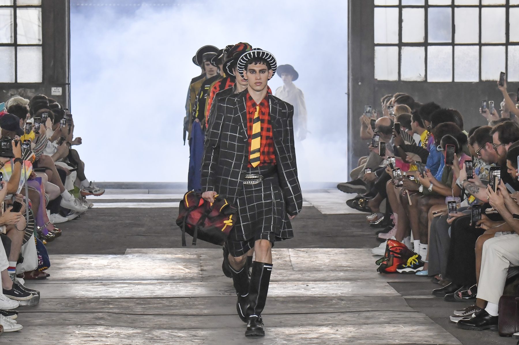MILAN, ITALY - JUNE 19: A model walks the runway during the Moschino Ready to Wear Spring/Summer 2023 fashion show as part of the Milan Men Fashion Week on June 19, 2022 in Milan, Italy. (Photo by Victor VIRGILE/Gamma-Rapho via Getty Images)