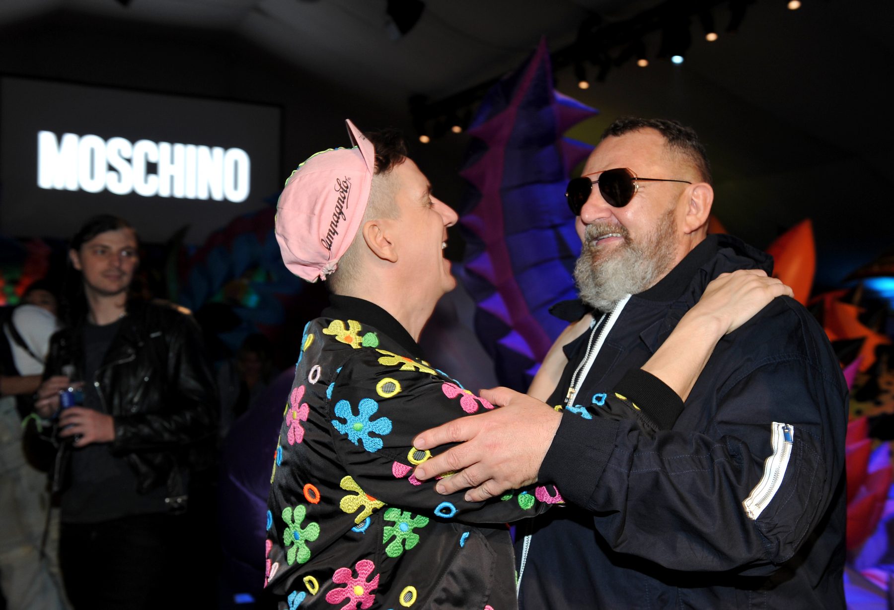 LOS ANGELES, CA - JUNE 10: Moschino Creative Director Jeremy Scott (L) and producer/director Michel Gaubert attend the Moschino Spring/Summer17 Menswear and Women's Resort Collection after party during MADE LA at L.A. LIVE Event Deck on June 10, 2016 in Los Angeles, California. (Photo by Donato Sardella/Getty Images for MOSCHINO)