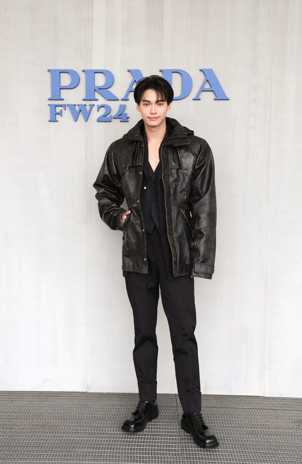 MILAN, ITALY - JANUARY 14: (EDITORS NOTE: This image has been retouched at the request of the subject.) Metawin Opas-iamkajorn attends the Prada Fall/Winter 2024 Menswear Fashion Show on January 14, 2024 in Milan, Italy. (Photo by Vittorio Zunino Celotto/Getty Images for Prada)