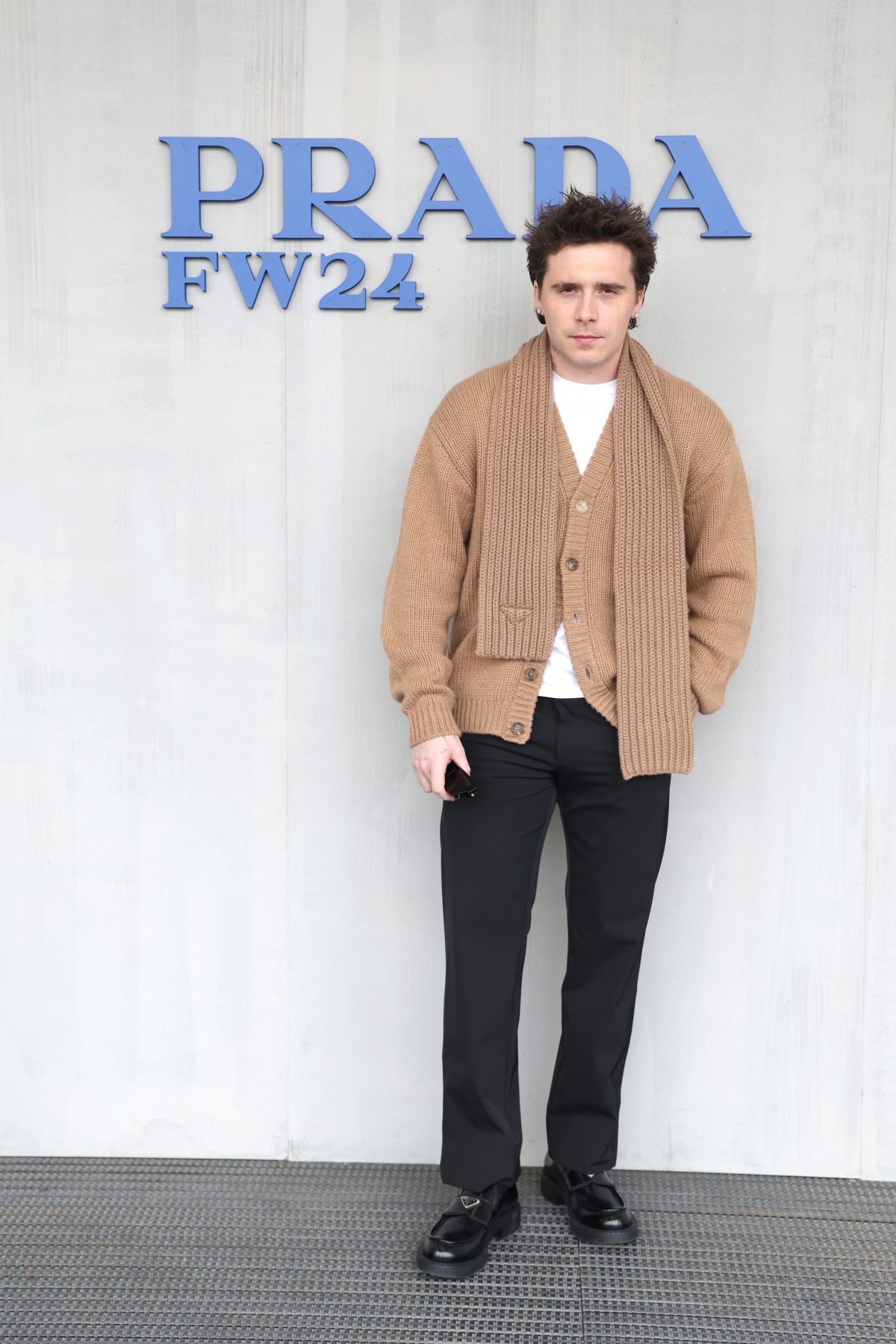 MILAN, ITALY - JANUARY 14: Brooklyn Peltz Beckham attends the Prada Fall/Winter 2024 Menswear Fashion Show on January 14, 2024 in Milan, Italy. (Photo by Vittorio Zunino Celotto/Getty Images for Prada)