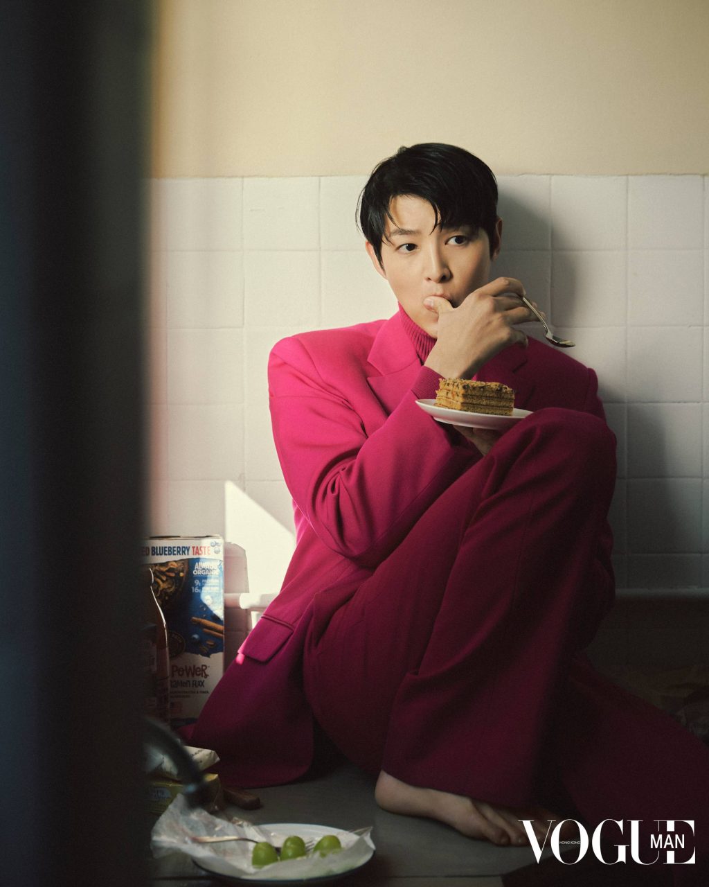 將夢想一步步落實兌現,可說是宋仲基多年來的座右銘。站穩了演員陣腳的他,還是希望繼續挑戰不同範疇。「如果你問我不當演員的話會想從事什麼職業,我想我會轉當幕後,總之一定不會轉 行從事和演藝無關的工作。我也喜歡戲劇、電影、OTT 和短片,我想把它們都學起來。至於眾多媒介中較喜歡哪一種,我會覺得根本不需區分,這條問題就像問你較喜歡爸爸或媽媽一樣,根本無法回答。」宋仲基笑說。值得一提的,是宋仲基在拍攝現場原來常被稱為「宋班長」的稱號,原因就是他常覺得拍戲最重要的是團隊精神:「拍攝現場台前幕後工作人員眾多,有時導演也未必能兼顧大小事情,因此我也不介意幫導演分擔他的部分工作,當上導演和演員 及工作人員之間的橋樑,所以大家才給我這個稱號,自己當然很樂 意做班長。拍戲時我也會從導演和編劇的角度思考,掌握他們認為我應該表達的演繹方式和感情。這個過程需要不斷磨合,我和導演及編劇也會不時討論,當然最終一切還是由導演決定。無論我的意見是否被採納,我也很享受當中的過程。拍戲時我總覺得自己是參加了一個旅程,當旅程完結時難免依依不捨。去年《黑道律師文森 佐》煞科,我也忍不住哭了,然後大家也哭了。不過,回想起來, 我每次煞科原來都會哭,或者說,沒有一部劇集或電影煞科時我是沒有哭的。」從整個訪問來看,《VOGUE MAN HONG KONG》認為宋仲基很珍惜拍攝現場和身邊的人,憑著他的行動力和當「班長」 的經驗,也許在不久的將來會有更多不同的作品誕生。
