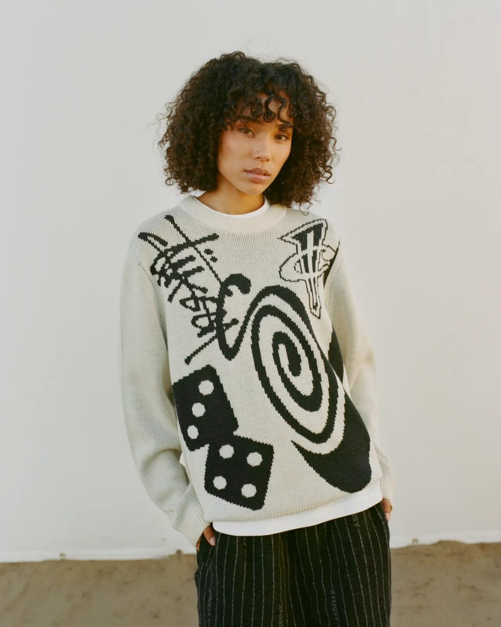 聯乘款服飾包含藍、灰、黑三色NRG 棉質運動套裝,大腿處及左胸前皆繡有雙方聯名 Logo,刷毛內裏與鬆緊飾邊則兼具了保暖及修身效果。 此外,羊毛細條紋套裝亦於連帽拉鍊夾克胸前與褲子後側口袋,融入雙方品牌標誌與文字標語的刺繡點綴,復古細節細膩而迷人,同款標誌設計亦以背後滿版的設計呈現於同系列的 T-Shirt 上,不論成套或混搭穿皆能穿出不俗的風格;最後融入NIKE Swoosh、Stussy 標誌性「八號球」、「骰子」等豐富圖案的針織毛衣吸睛卻不突兀,使得本番聯乘系列更加完整與完美。