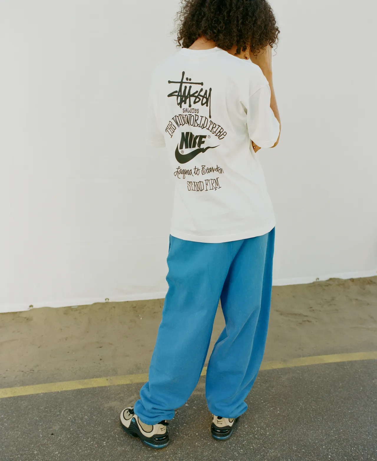 聯乘款服飾包含藍、灰、黑三色NRG 棉質運動套裝,大腿處及左胸前皆繡有雙方聯名 Logo,刷毛內裏與鬆緊飾邊則兼具了保暖及修身效果。 此外,羊毛細條紋套裝亦於連帽拉鍊夾克胸前與褲子後側口袋,融入雙方品牌標誌與文字標語的刺繡點綴,復古細節細膩而迷人,同款標誌設計亦以背後滿版的設計呈現於同系列的 T-Shirt 上,不論成套或混搭穿皆能穿出不俗的風格;最後融入NIKE Swoosh、Stussy 標誌性「八號球」、「骰子」等豐富圖案的針織毛衣吸睛卻不突兀,使得本番聯乘系列更加完整與完美。