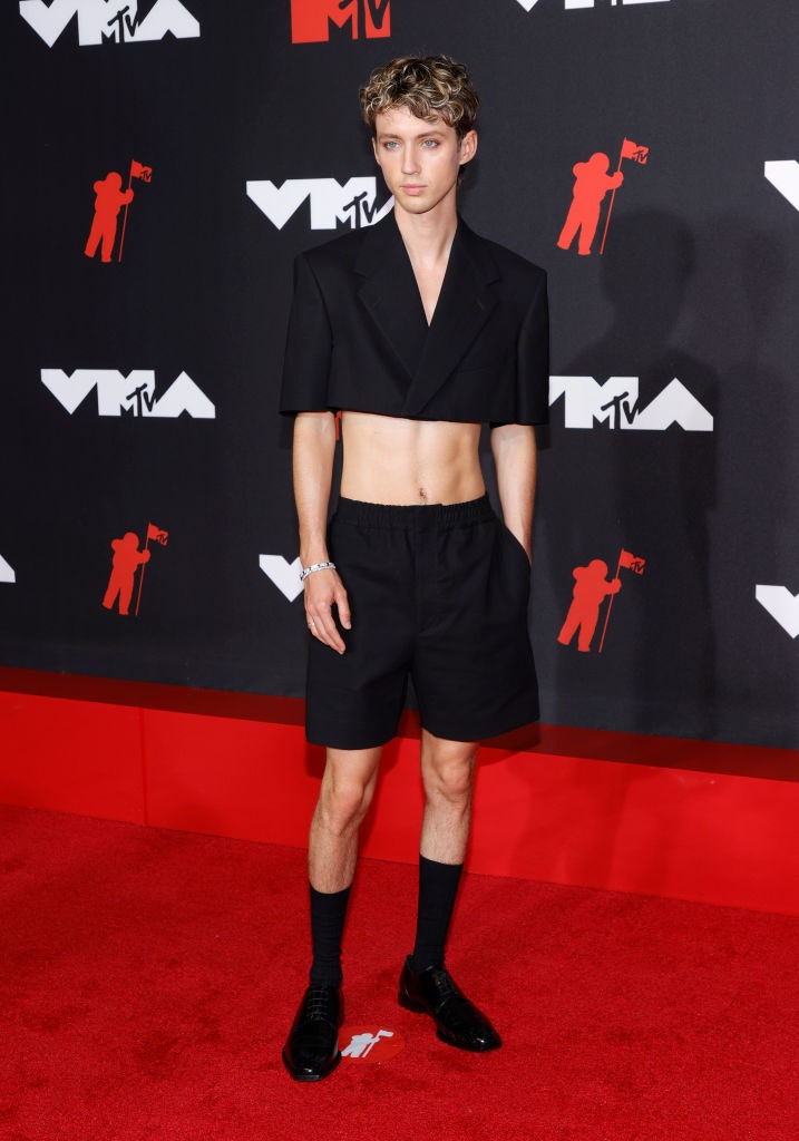 在 2021 年的 VMA 上,Sivan 穿著 Fendi 剪裁短款套裝,炫耀他雕塑般的腹肌。 (如果你有的話……)