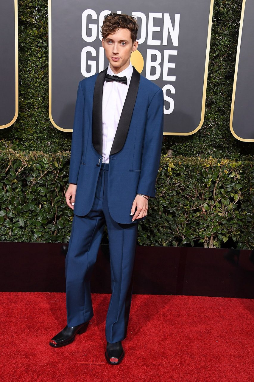 從頭到腳的 Calvin Klein(由 Raf Simons 設計)西裝造型,Sivan 輕鬆成為去年金球獎最佳著裝男士。 加長的披肩領海軍燕尾服展示了他輕盈的身材,甚至還穿著一雙方頭牛仔靴,相當突出。