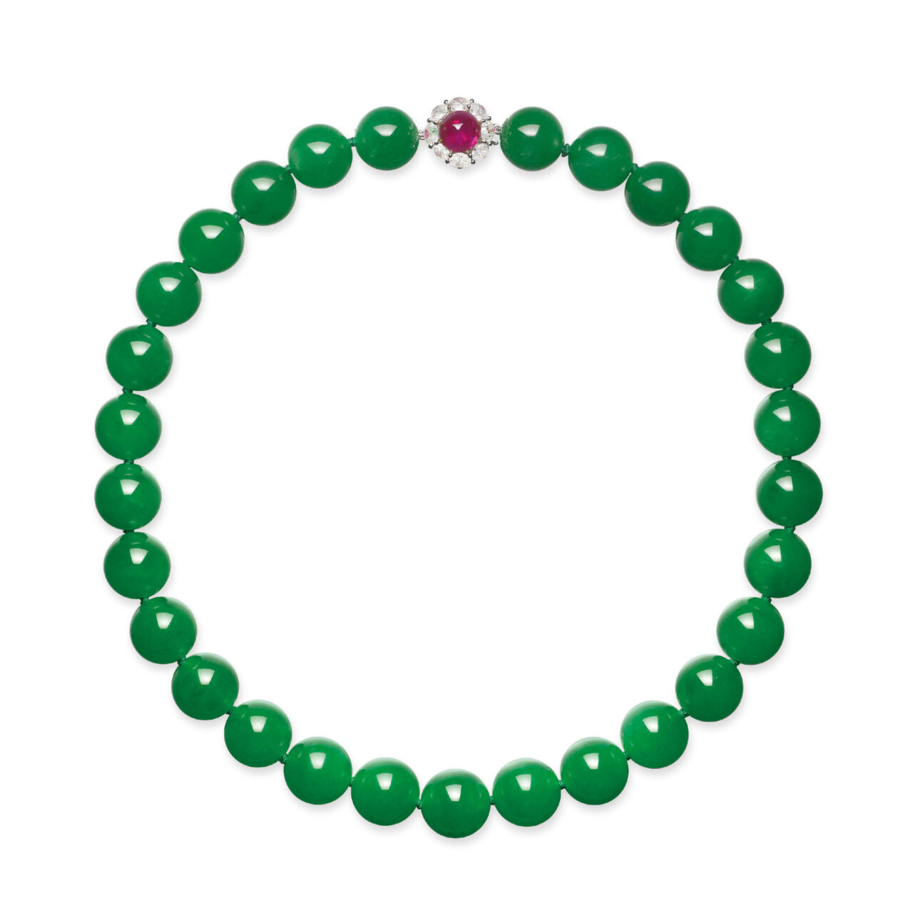 香港拍賣十大奢華珠寶|超凡極品「帝王玉」天然翡翠珠配紅寶石及鑽石項鏈|Sotheby’s 2020年