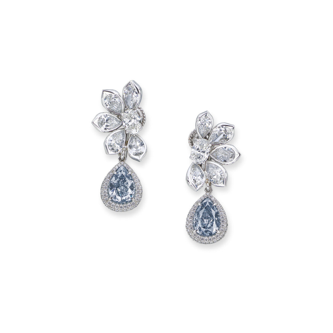 香港拍賣十大奢華珠寶|淺藍色鑽石及鑽石耳環| Christie’s 2021