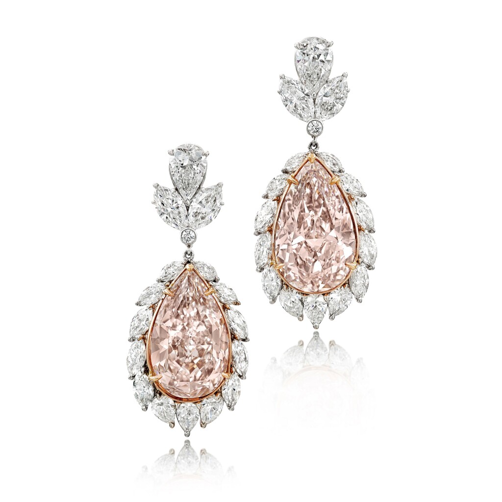 香港拍賣十大奢華珠寶|彩粉紅色鑽石配鑽石耳墜|Sotheby’s 2023年